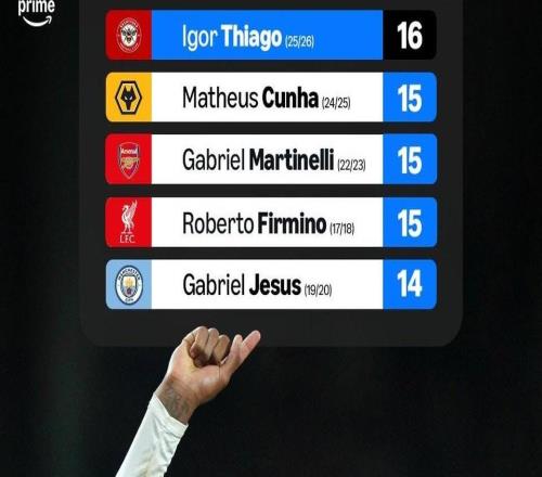 英超第21轮,布伦特福德主场对阵桑德兰,布伦特福德前锋伊戈尔-蒂亚戈上演梅开二度,以16球打破巴西球员单赛季英...