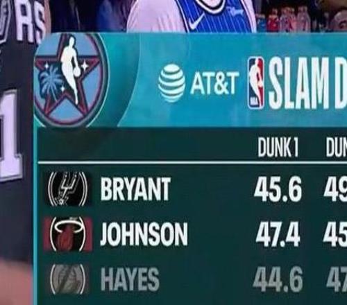 马刺小将满分扣篮后失手热火约翰逊捡漏扣篮大赛冠军