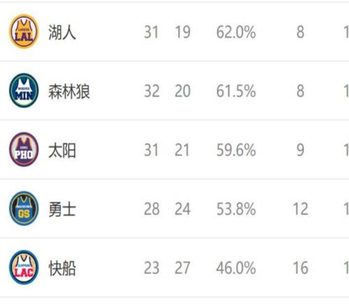 西部排名又变了:火箭爆冷连败,湖人坐收好礼,2队排名互换