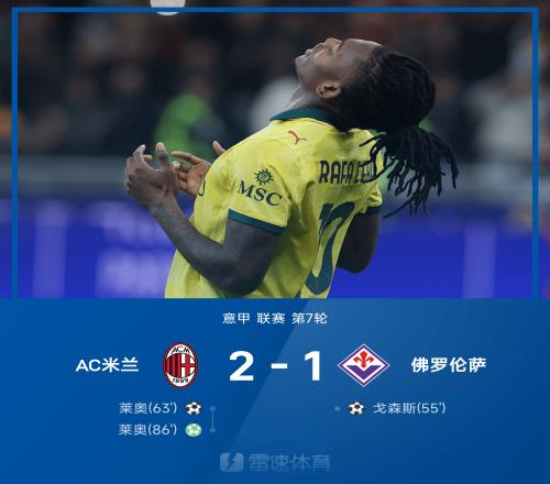 雷速体育10月20报道 25/26赛季意甲联赛第7轮,AC米兰2-1战胜佛罗伦萨。上半场比赛两队互交白卷,下半场比赛戈森...