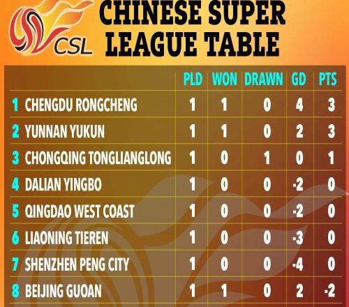 太阳报关注中超新赛季:半数队负分开局,首轮后升班马也可居前列