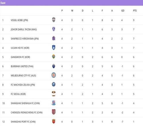 大写的尴尬!申花客场不敌柔佛新山,亚冠积分榜中超前三集体垫底