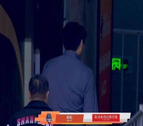 面对当值裁判的这个吹罚,山东队主教练邱彪十分不满意,于是就上前找裁判进行理论,然而,不理论还好,一理论邱彪更加生气,只见邱彪脱下自己的西装,愤怒地将自己的西装重重的砸在地上,同时,就冲到场上,要和裁判进行理论,还似乎要打裁判一样……