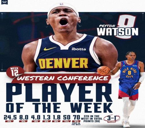 事实上,周最佳对于掘金——除了约基奇之外的掘金都非常罕见,约基奇时代,总共只有两名球员各自拿到周最佳,一个是贾马尔穆雷,另一个就是佩顿沃特森。