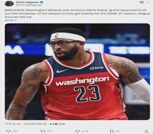 北京时间2月7日中午,据NBA名记Chris Haynes报道,奇才球星安东尼-戴维斯因为手部和腹股沟伤病,本赛季正式报销,有望在2026-27赛季完全康复。浓眉(5413万美元)与特雷-杨(4639万美元),本赛季薪水合计1亿美元!
