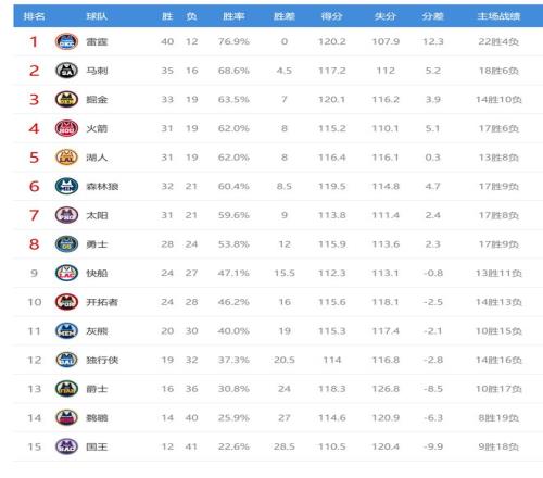 今日比赛后西部排名没有变化,只是胜场差距有所变化。