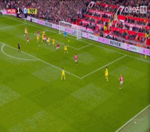 第37分钟,曼联角球配合,姆伯莫推杆破门,曼联1-0领先热刺!
