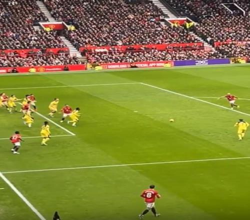 梅努从近门柱突然前插,接应布鲁诺-费尔南德斯的传球。这一跑位还牵制了哈维-西蒙斯向边路移动,为姆伯莫创造出射门空间。