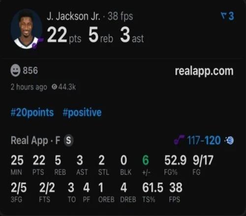 第四节,还没打尽兴的JJJ也被死死按在替补席上,3节25分钟17投9中,3分5中2,砍下了22分,+/-值+6