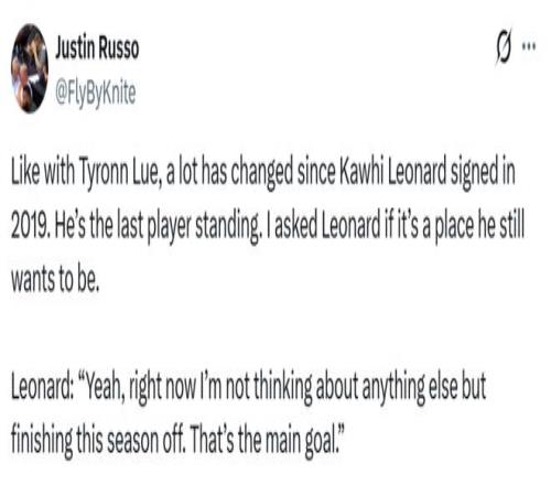 自从19年加入快船以来,小卡目前是唯一还留队的球员,因此他自然被问到是否还想留在这里,小卡说道:“是的,我现在满脑子的想法就是如何完成这个赛季,这是我的主要目标。”