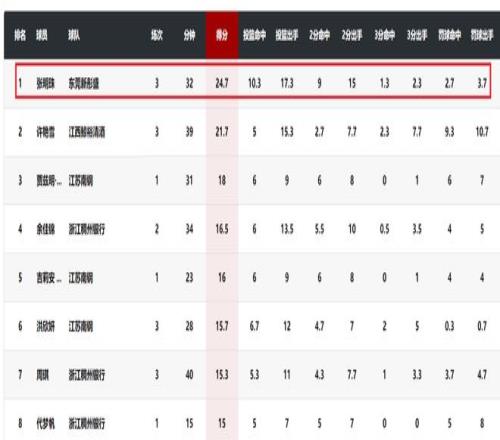 小组赛第一战,广东女篮76比70击败新疆女篮,张明珠出战31分钟,12投7中,三分球1中1,罚球2次全进,得到17分8篮板2盖帽,正负值+8。