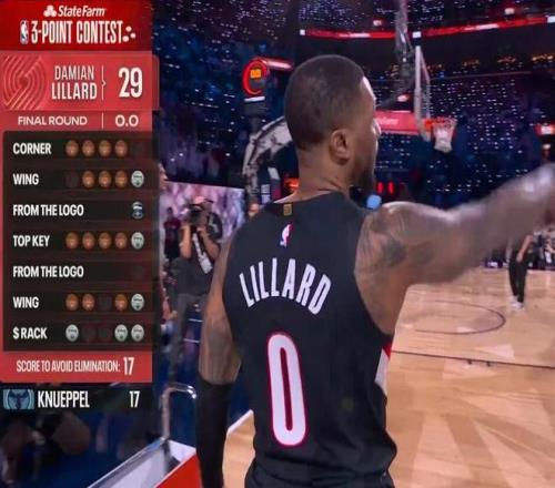 利拉德带伤复出首秀全明星3分大赛,他用无与伦比的29分向全联盟宣布 :哪怕老子一条腿站着,只要给我75秒,这天下还是我的。