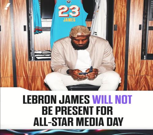 北京时间2月15日,NBA官方宣布,勒布朗-詹姆斯不会出席NBA全明星媒体日活动,但他会在全明星正赛的当天出席。这个消息在全美范围内引发了热议,很多记者抨击勒布朗这有损联盟的利益,毕竟他不出席就少了很多的曝光率、流量。