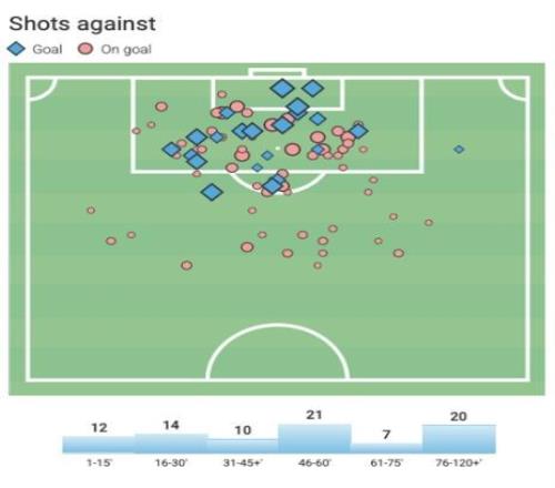 如果现在再回看迪亚斯的参与进球和参与制造得分机会完整点位图,你会发现,迪亚斯最有威胁的时间主要集中在下半场前半段和后半段,这两个足球比赛尤为关键的时期。本赛季,拜仁在落后或胶着的比赛中,迪亚斯贡献7球4助,独造11球,占球队胶着局进球数的42%。迪亚斯的所有数据,都是在全德甲所有球员压力值最大的情况下取得的,即便这样他也竟然也值是本赛季德甲场均评分第二的左边锋,但所有数据都能证明迪亚斯有一颗大心脏。