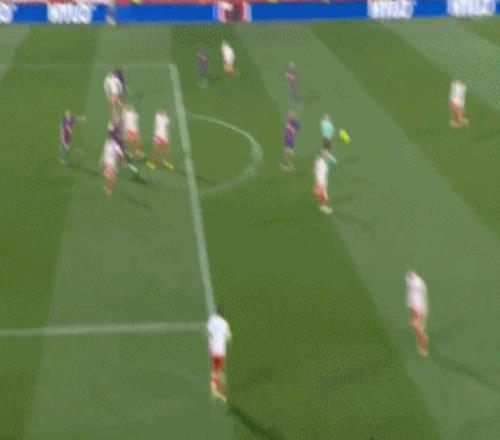 第94分钟,费尔明左路45°传中,莱万头球没有顶到,皮球直接钻入网窝,不过裁判示意莱万越位在先。