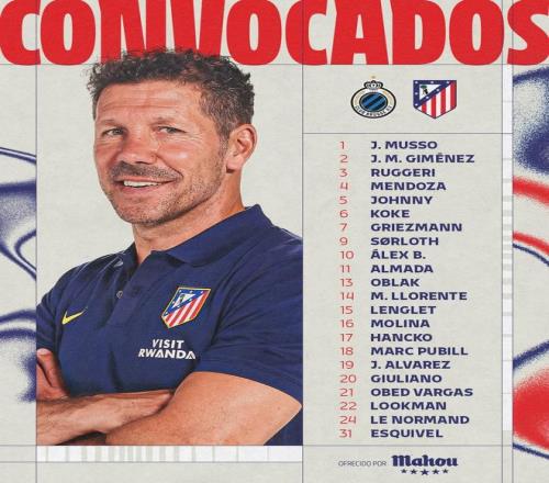 北京时间2月17日,马竞官方发布欧冠淘汰赛附加赛首回合客战布鲁日的大名单,阿尔瓦雷斯、格列兹曼在列,冈萨雷斯伤缺。