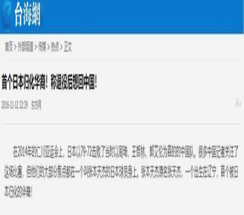 环球网:首位被日本归化的华裔球员,称没关系难进国家队,最想赢中国!