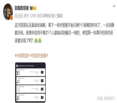 另外,或许是考虑到之前两输韩国后,中国队这一次极为保守,尽管距离比赛还剩下不到一周的时间,但中国队还是迟迟没有动作。目前,国家队集训究竟是什么成果,暂时不得而知。而且,按照国际大赛的规则,男篮最终也只能带14人大名单,这也就意味着,现有的21人集训名单,至少还会裁掉7人。如果是以往,被裁掉的球员会提前离队,可现如今,男篮却迟迟没有裁员。