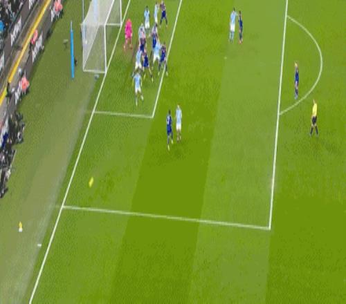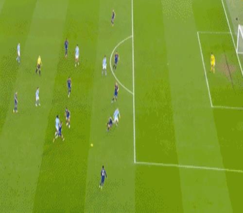 第37分钟,曼城球员B席中路挑传,马尔穆什杀入禁区低平球传中,奥赖利飞身铲射打偏,错失帽子戏法!