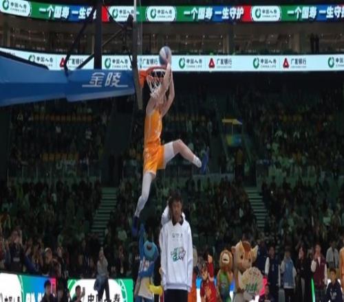 第4位出场的是广州球员张文杰,他完成底线加速拉杆双手反扣得到46分。