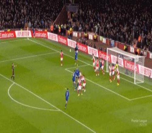 第13分钟,赖斯左路45°传中,苏维门迪头球后蹭,萨卡近距离冲顶,皮克福德回敬神扑,埃弗顿逃过一劫。