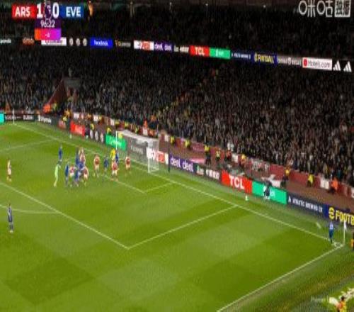 第13分钟,萨卡近距离头槌,皮克福德献神扑
