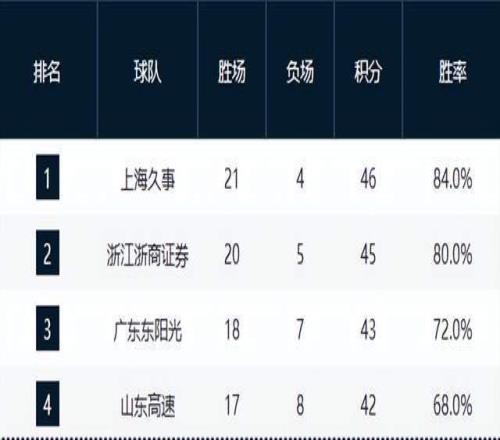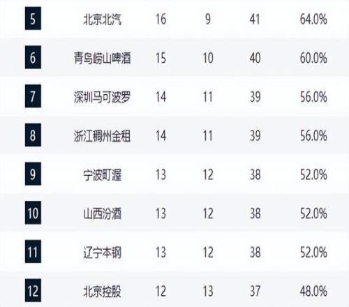 上海力压广厦独占鳌头,广东稳住第3,山东守住第4,辽宁强势崛起