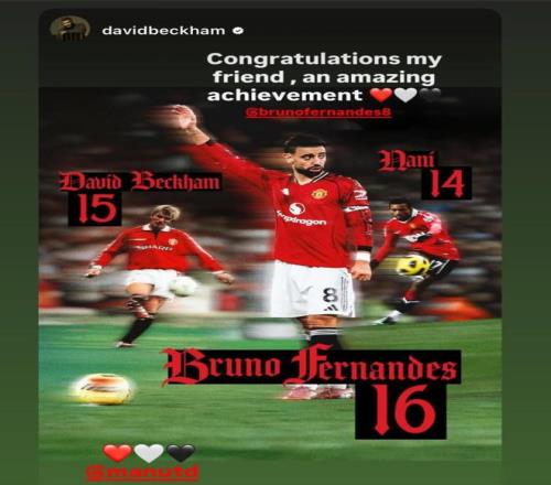 恭喜B费打破自己的助攻纪录,贝克汉姆:恭喜你我的朋友
