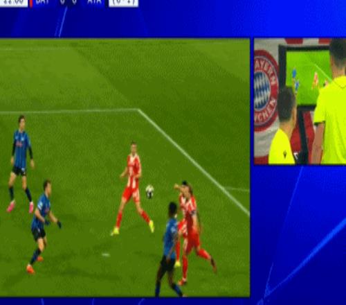 第23分钟,格雷罗左路传中,凯恩禁区内凌空扫射,斯卡尔维尼手臂挡出,裁判回看VAR后判罚点球。
