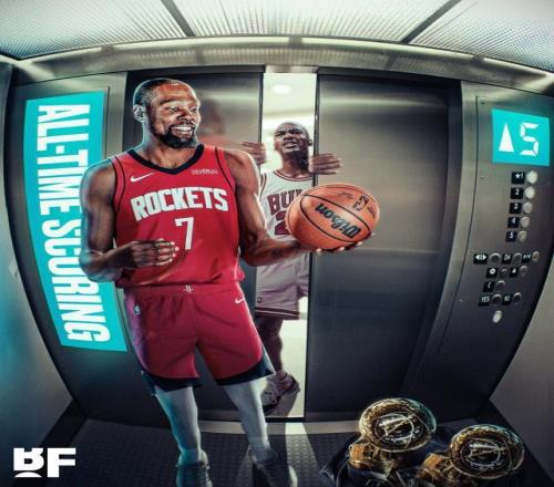 北京时间3月22日,火箭主场123比122险胜热火。末节最后4分46秒,杜兰特命中一记底角三分,生涯常规赛总得分来到32294分,超越迈克尔·乔丹,升至NBA历史第五位。