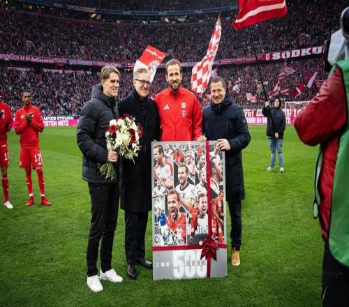 荣耀时刻,凯恩赛前获赠职业生涯500球里程碑纪念礼物